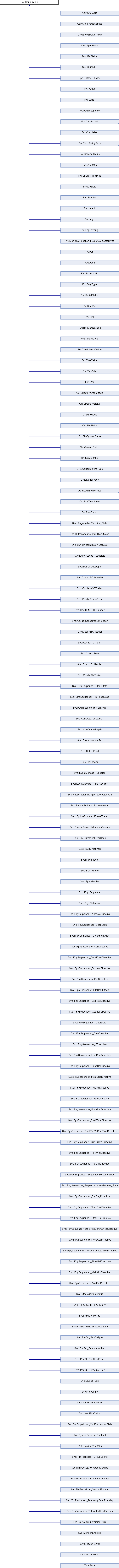 Implemented in Svc::Fpy::DirectiveId, Os::FileSystemStatus, Os::TaskStatus, Os::FileStatus, Os::QueueStatus, Svc::VersionCfg::VersionEnum, ComCfg::Apid, Os::DirectoryStatus, Svc::PolyDbCfg::PolyDbEntry, Svc::Ccsds::Tfvn, Os::RawTime, Svc::Fpy::DirectiveErrorCode, Svc::FpySequencer_SequencerStateMachine_State, Svc::PrmDb_PrmReadError, Fpp::ToCpp::Phases, Fw::LogSeverity, Svc::PrmDb_PrmWriteError, Svc::EventManager_FilterSeverity, Fw::CmdResponse, Os::FileMode, Svc::FileDispatcherCfg::FileDispatchPort, Drv::I2cStatus, Drv::SpiStatus, Fw::MemoryAllocation::MemoryAllocatorType, Os::MutexStatus, Os::RawTimeStatus, Svc::VersionType, Fw::DpCfg::ProcType, Fw::DeserialStatus, Svc::CmdSequencer_FileReadStage, TimeBase, Drv::ByteStreamStatus, Svc::Ccsds::FrameError, Svc::BuffQueueDepth, Svc::ComQueueDepth, Svc::TlmPacketizer_GroupConfigs, Svc::TlmPacketizer_SectionConfigs, Svc::TlmPacketizer_SectionEnabled, Svc::TlmPacketizer_TelemetrySendPortMap, Svc::TlmPacketizer_TelemetrySendSection, Svc::RateLogic, Drv::GpioStatus, Fw::DpState, Svc::TelemetrySection, Fw::Direction, Fw::Health, Fw::SerialStatus, Svc::MeasurementStatus, Fw::Completed, Os::DirectoryOpenMode, Svc::AggregationMachine_State, Fw::Buffer, Fw::ParamValid, Fw::Active, Fw::Enabled, Fw::Logic, Fw::On, Fw::Open, Fw::Success, Fw::Wait, Os::GenericStatus, Os::QueueBlockingType, Svc::DpHdrField, Svc::EventManager_Enabled, Svc::SendFileStatus, Svc::VersionStatus, Svc::VersionEnabled, Fw::TimeComparison, Svc::FprimeRouter_AllocationReason, Svc::Fpy::FlagId, Svc::PrmDb_PrmDbFileLoadState, Svc::PrmDb_PrmLoadAction, Svc::CmdSequencer_BlockState, Svc::CmdSequencer_SeqMode, Svc::QueueType, Svc::FpySequencer_FileReadStage, Svc::FpySequencer_GoalState, Svc::PrmDb_PrmDbType, Svc::SeqDispatcher_CmdSequencerState, Fw::TlmValid, Svc::BufferAccumulator_BlockMode, Svc::BufferAccumulator_OpState, Svc::BufferLogger_LogState, Svc::FpySequencer_BlockState, Svc::PrmDb_Merge, Svc::SystemResourceEnabled, Svc::Fpy::Sequence, Svc::FpySequencer_ConstCmdDirective, Svc::FpySequencer_PushValDirective, Fw::PolyType, Svc::DpRecord, Svc::Fpy::Header, ComCfg::FrameContext, Svc::TlmPacketizer_GroupConfig, Fw::TimeValue, Svc::Ccsds::TMHeader, Svc::CustomVersionDb, Svc::Ccsds::SpacePacketHeader, Svc::Ccsds::TCHeader, Svc::Fpy::Statement, Svc::FprimeProtocol::FrameHeader, Svc::ComDataContextPair, Svc::Ccsds::AOSHeader, Svc::FpySequencer_GetFieldDirective, Svc::FpySequencer_LoadRelDirective, Svc::FpySequencer_StoreRelConstOffsetDirective, Svc::SendFileResponse, Svc::FpySequencer_BreakpointArgs, Svc::FpySequencer_LoadAbsDirective, Svc::FpySequencer_ReturnDirective, Svc::FpySequencer_SequenceExecutionArgs, Svc::FpySequencer_StoreAbsConstOffsetDirective, Fw::TimeIntervalValue, Svc::Ccsds::AOSTrailer, Svc::Ccsds::M_PDUHeader, Svc::Ccsds::TCTrailer, Svc::Ccsds::TMTrailer, Svc::FprimeProtocol::FrameTrailer, Svc::FpySequencer_PushTlmValAndTimeDirective, Svc::Fpy::Footer, Svc::FpySequencer_AllocateDirective, Svc::FpySequencer_DiscardDirective, Svc::FpySequencer_MemCmpDirective, Svc::FpySequencer_PushPrmDirective, Svc::FpySequencer_PushTlmValDirective, Svc::FpySequencer_StackCmdDirective, Svc::FpySequencer_StackOpDirective, Svc::FpySequencer_StoreAbsDirective, Svc::FpySequencer_StoreRelDirective, Svc::FpySequencer_CallDirective, Svc::FpySequencer_ExitDirective, Svc::FpySequencer_GetFlagDirective, Svc::FpySequencer_GotoDirective, Svc::FpySequencer_IfDirective, Svc::FpySequencer_NoOpDirective, Svc::FpySequencer_PeekDirective, Svc::FpySequencer_PushTimeDirective, Svc::FpySequencer_SetFlagDirective, Svc::FpySequencer_WaitAbsDirective, Svc::FpySequencer_WaitRelDirective, Os::RawTimeInterface, Os::Posix::RawTime::PosixRawTime, Fw::ConstStringBase, Os::Stub::RawTime::StubRawTime, Fw::Time, Fw::TimeInterval, Fw::AmpcsEvrLogPacket, Fw::TlmPacket, Fw::CmdPacket, and Fw::LogPacket.