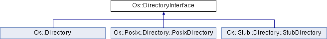 Implemented in Os::Directory, Os::Posix::Directory::PosixDirectory, and Os::Stub::Directory::StubDirectory.
