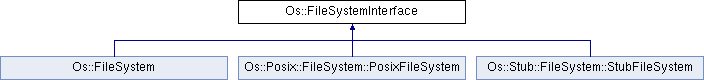 Implemented in Os::FileSystem, Os::Posix::FileSystem::PosixFileSystem, and Os::Stub::FileSystem::StubFileSystem.